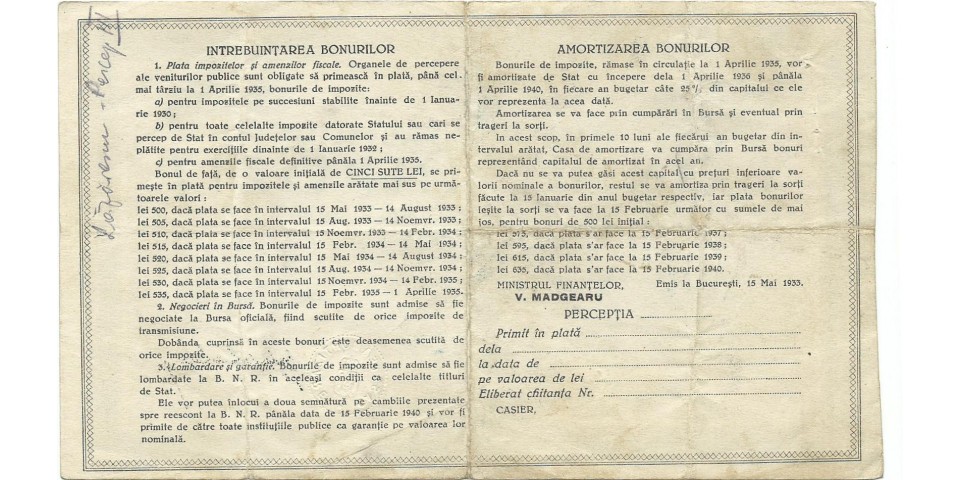 Romania Bon de impozit 500